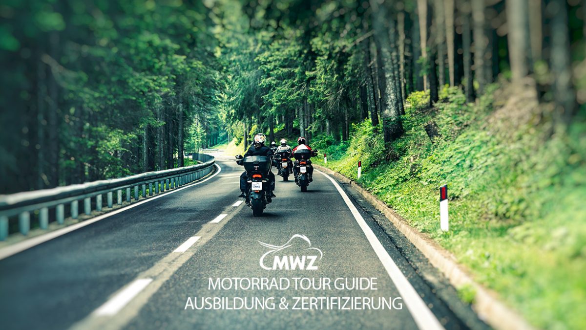 MWZ Motorrad Tour Guide Ausbildung & Zertifizierung | 12+ Jahre Erfahrung | 150+ MWZ Motorrad Tour Guides | Hybrid-Ausbildung: Webinar, Theorie & Praxis