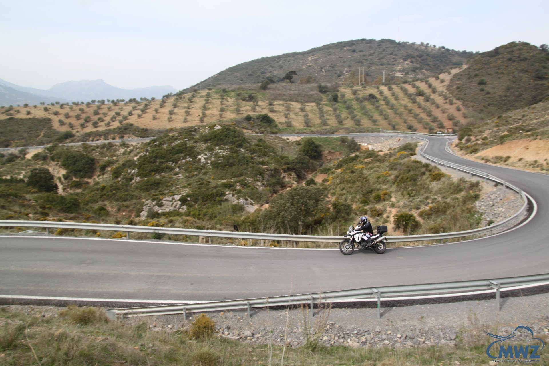 Andalusien die südlichste Provinz von Spanien lockt mit wundervollen Motorradstrecken auf befestigten, wie auch unbefestigten Strecken. Traumhafte und kontrastreiche Landschaften mit Hügelketten bis auf 2000 m Höhe, sensationelle Serpentinenstrecken mit atemberaubenden Panoramen und relaxtem Straßenverkehr warten, um von uns unter die Räder genommen zu werden.