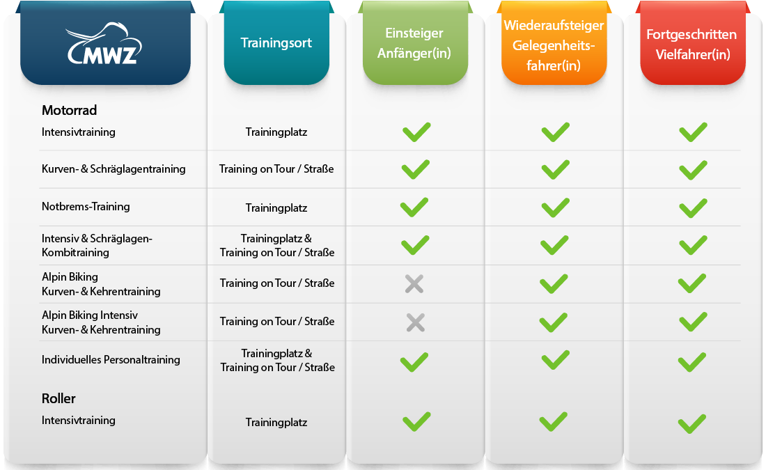 Überblick MWZ Motorrad-Fahrsicherheitstraining