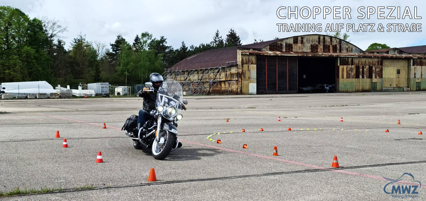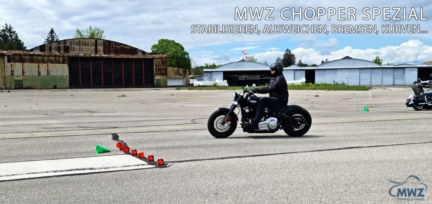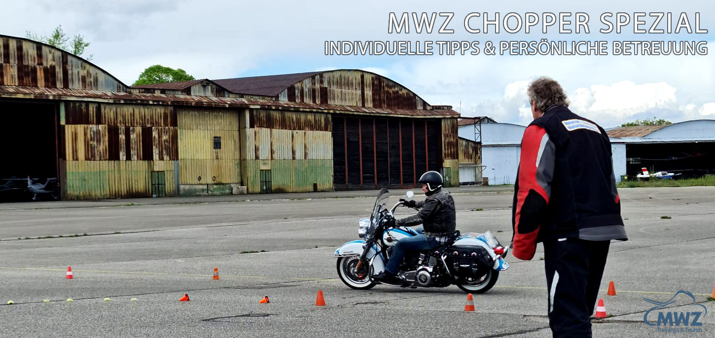 Für den optimalen Start in Deine Saison oder um Dein neues Motorrad besser kennenzulernen bieten wir Euch unser eintägiges Intensivtraining auf dem Platz und unser eintägiges Kurven- & Schräglagentraining on Tour jeweils als MWZ Motorradtraining Chopper Spezial an.