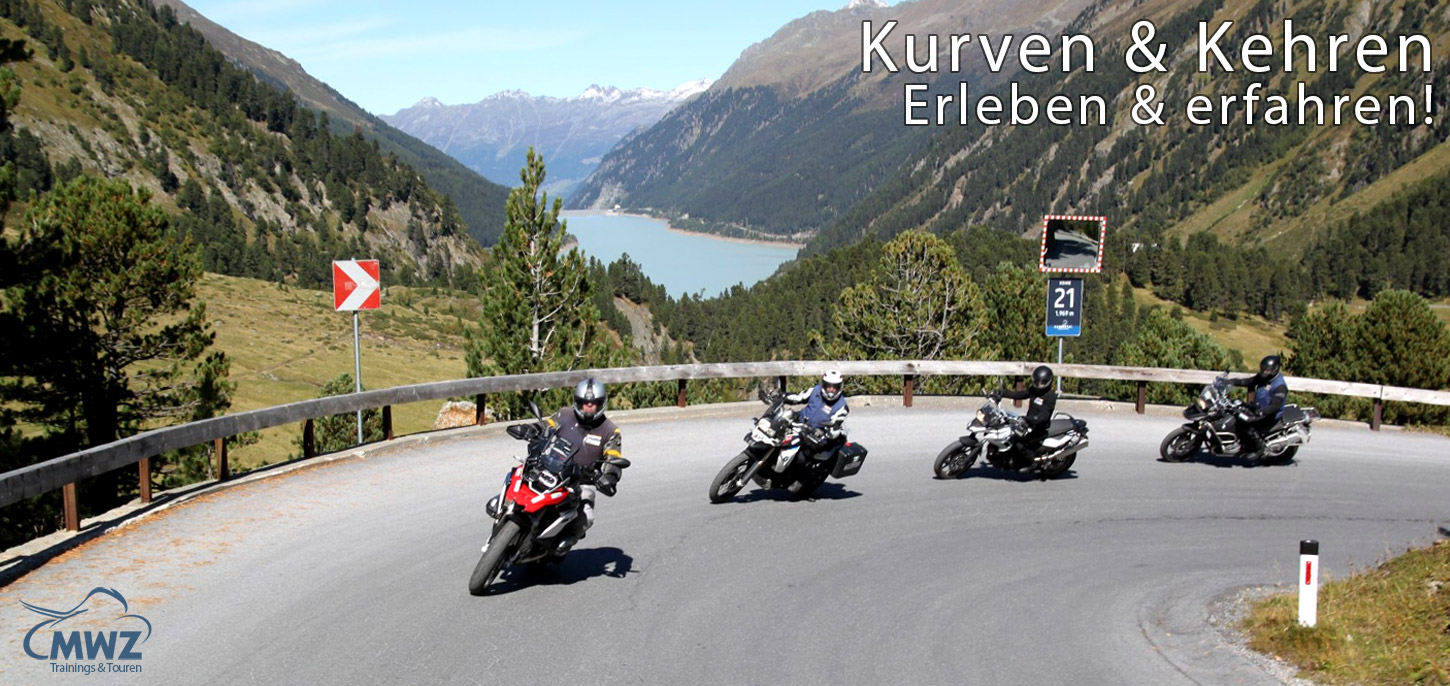 Die schönste Verbindung zwischen zwei Punkten ist eine Kurve. Den richtigen Schwung und die perfekte Linie zu finden ist das Ziel dieses Trainings. Wir werden mit Dir über mehrere Tage hinweg in theoretischen wie auch praktischen Teilen die Fahrtechniken sowie die Bewegungsabläufe beim Kurven- und Kehrenfahren studieren und optimieren. Selbst im besten Schwung, auf der perfekten Linie, tauchen hin und wieder Hindernisse auf. Deshalb feilen wir natürlich auch an Deiner Ausweich- und Bremstechnik. Um Dir den bestmöglichen Erfolg zu ermöglichen, zeichnen wir einige Fahrten mit Videokameras auf. Bei der allabendlichen Besprechung analysieren wir dann die Videos der verschiedenen Fahrten. Bei Bedarf sind wir während der Übungen per Funk mit Dir verbunden, um Dich sofort korrigieren zu können.