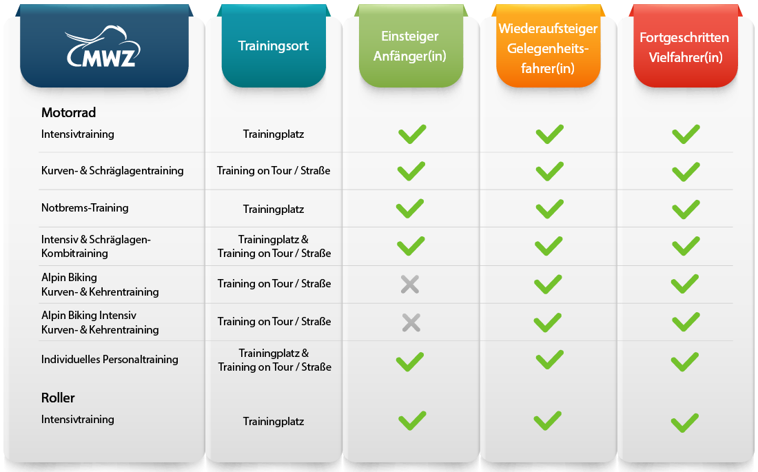 Trainingstour ist das optimale Stichwort zu unseren mehrtägigen MWZ Kurven- & Kehrentraining. Wir haben diese jahrelang bei Euch sehr beliebten Trainings weiter optimiert.